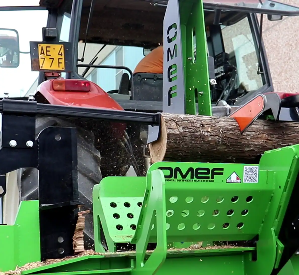 The OMEF TS400 firewood processor is an advanced, fully autonomous system designed to section and split firewood with ease, comfort, and maximum productivity. Suitable for excavators, skid steer loaders, and tractors, the TS400 handles every stage of the process — from loading to cutting to splitting — without requiring the operator to leave the cab.