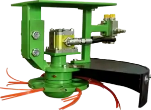 Cutting performance is achieved through a double ball-bearing rotor that drives 24 nylon mowing wires. These wires provide clean cutting action and can be easily replaced when worn. The mower’s frame is built from wear-resistant steel for long-lasting durability, while the hydraulic gear motor powers the cutting system efficiently. A self-draining motor version is also available to simplify hydraulic setup and improve compatibility.