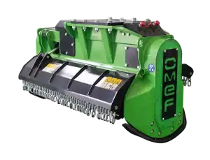 OMEF’s excavator mulchers are heavy-duty agricultural and forestry attachments designed for efficient mulching and clearing of grass, shrubs, reeds, and woody vegetation up to 20 centimetres in diameter. Available in 10 different models, these mulchers offer a complete solution for maintaining green areas in both urban environments and demanding forestry contexts. Each model can be installed on excavators or skid steer loaders, giving operators a wide, versatile working range.