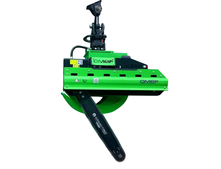 The OMEF PTH oscillating grapple saw is a powerful and versatile attachment designed for cutting and handling logs of various diameters on an excavator. Built for demanding forestry work and heavy-duty material handling, the PTH is available in two models capable of cutting from 450 to 900 millimetres in diameter.