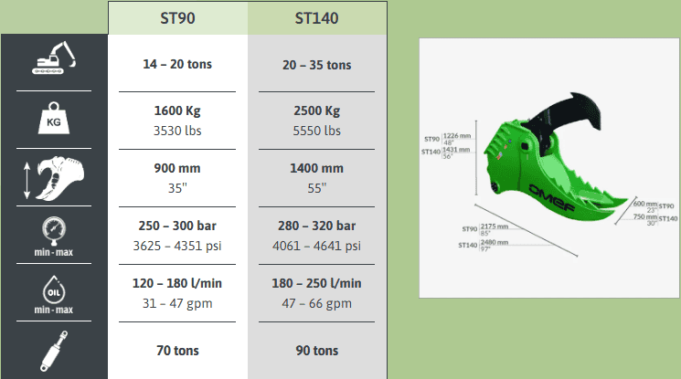 Compatible carrier machines: 20 to 35 tonnes